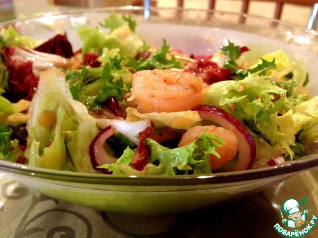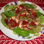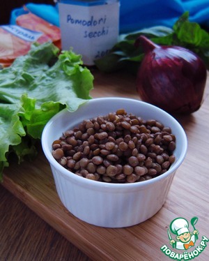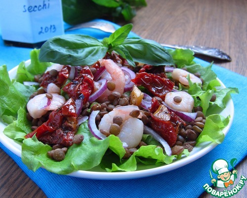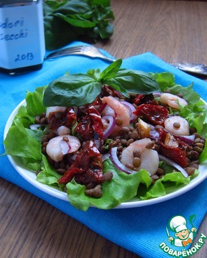 Рецепт «Чечевичный салат с креветками и вялеными томатами»: