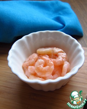 Я воспользовалась готовыми креветками в масле, но можно и отварить замороженные.
