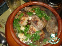 Описание: Нежное мясо кролика, тушенное в горшочке с черносливом.