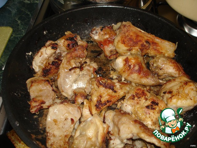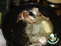 Куски кролика вынуть, обвалять в муке и еще раз обжарить на сливочном масле со всех сторон. |
