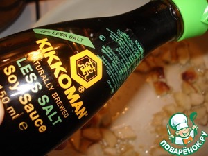 К ним добавляем натурально сваренный легкий соевый соус Kikkoman, он подчеркнет аромат грибов.