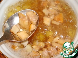 Поджаренные грибы добавляем в кастрюлю с супом.