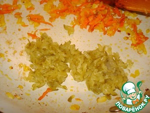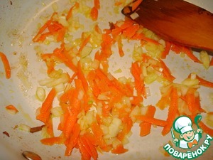 На сковороде пассеруем нарезанный лук и натертую на крупной терке морковь