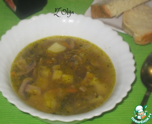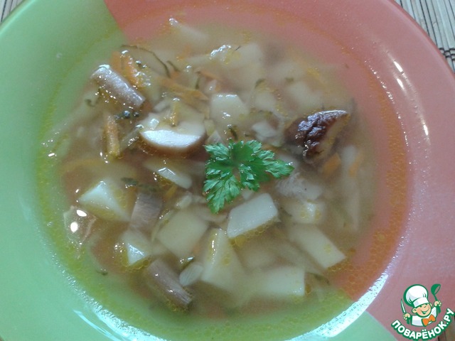 Рецепт «Грибной суп с картофелем и солеными огурцами»: