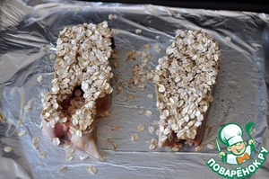 Рецепт «Лосось с горчицей, запеченный в овсяных хлопьях»: