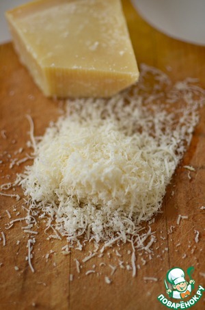Натираем твердый сыр. Мне очень нравится пикантный пармезан, но можно взять и любой другой сыр на ваш вкус.