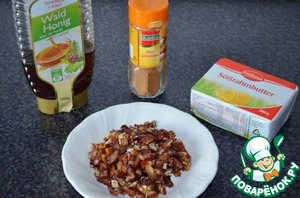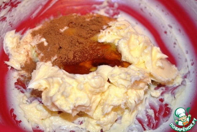 Сливочное масло взбить немного, добавить мёд, корицу. Хорошо перемешать, больше не взбивать.