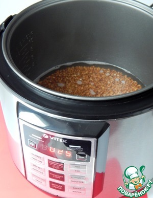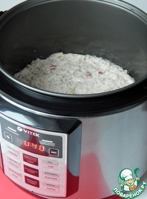 Добавить воду и соль. Готовить в режиме «Каша» 25 мин.