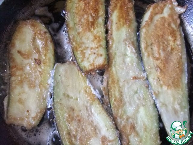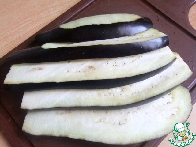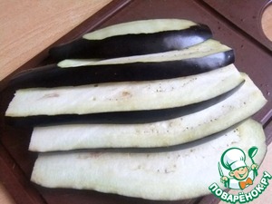 Время приготовления указано без учета времени запекания. Порезать баклажаны вдоль, полосками в палец толщиной.