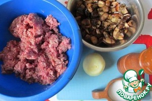 • Займемся начинкой. Грибы можно взять любые: свежие, замороженные или горсть сухих. Фарш тоже можно использовать любой мясной или птичий. У меня фарш говяжий, а грибы лесные замороженные.