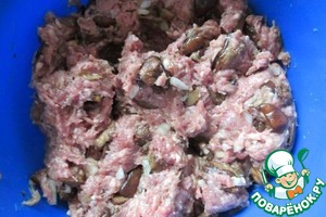 • Отправляем грибы в фарш и хорошо вымешиваем.