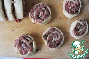 Отставляем рулет в сторонку и занимаемся второй половиной теста и начинки.