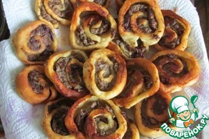 Очень вкусная выпечка! Все знают беляши? А вот завитуши - родственники беляшей. Интересное тесто на твороге, вкусная начинка из сырого мясного фарша и грибов с луком. Полноценный ужин или легкий обед, прекрасная горячая закуска, с пылу-жару - просто пальчики оближешь! Готовить просто и легко. Идея из старого журнала "Вкусно и просто".
