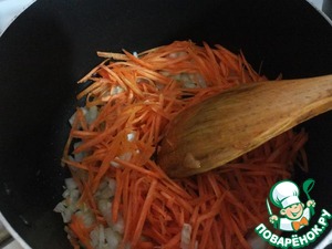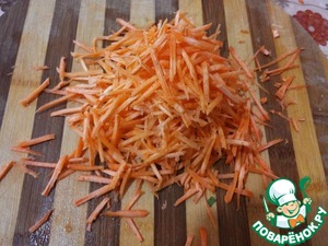 Морковь натереть через крупную терку, а лучше, если есть, через корейскую терку.