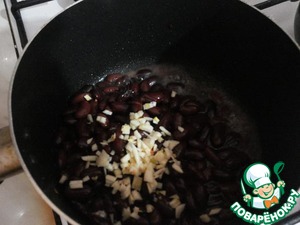 Фасоль и чеснок точно так же быстро обжарить (1 мин.) на масле, выложить в миску.
