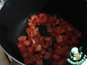 Лук и морковь быстро ( около 1 минуты) обжарить на раскаленном растительном масле и выложить в миску.