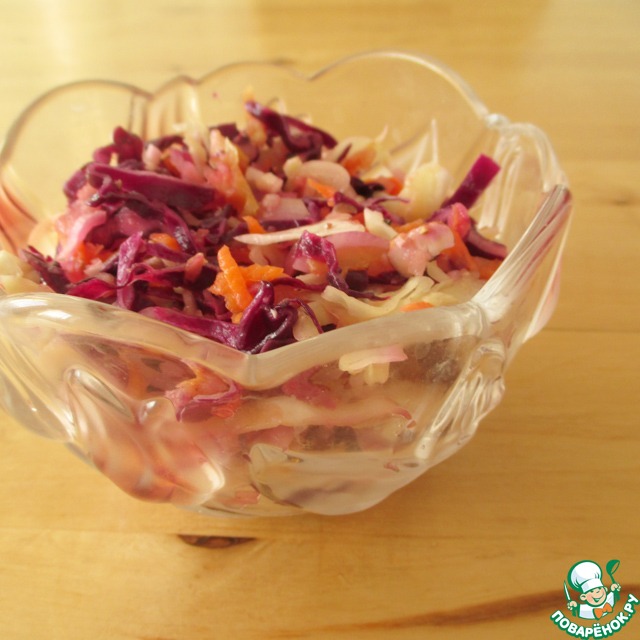 Оба вида капусты нашинковать. Добавить щепотку соли.