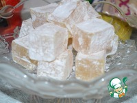 Описание: Предлагаю не совсем обычный рецепт рахат-лукума. Вместо крахмала, как в большинстве случаев, будем использовать рис. В качестве наполнителя послужит яблочный сок, который, при желании можно заменить на другой, например персиковый или абрикосовый. По вкусу не догадаешься, что десерт сделан из риса. А теперь немного легенды о любившем сладости султане и его придворном поваре Али, который удивил своего хозяина новым видом сладости.
