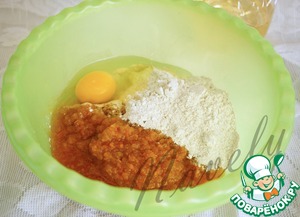 Как говорится, все элементарно. Соединяем в миске кабачковую икру, муку и яйцо.