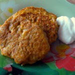 кстати, в такие оладьи можно в принципе и баклажанную икру и даже какой либо овощной салат, предварительно измельчив его.