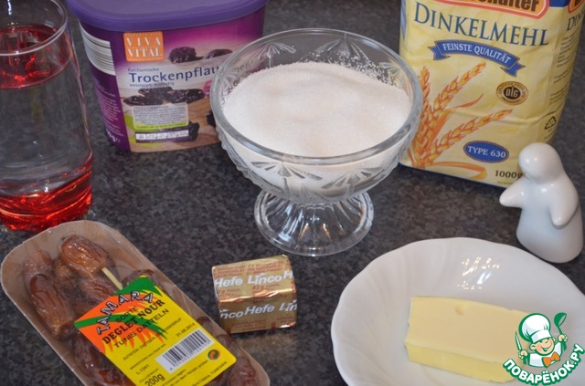 Ингредиенты для «Сладкий хлебушек с орешками и сухофруктами»: