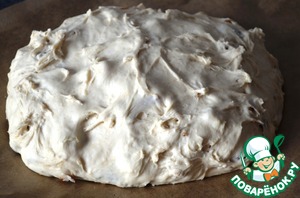 Помесить тесто ещё 5 минут, накрыть плёнкой и поставить в тёплое место подниматься, на 1 час. Я нагрела духовку на 50 градусов и поставила его туда.