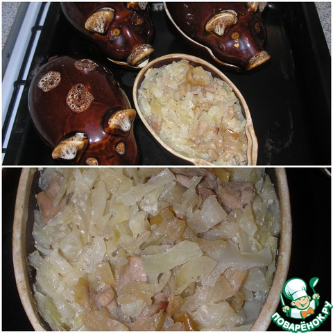 Ингредиенты для "Капуста с копченой свининой в горшочках":