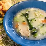 В кипящий бульон засыпать овощи и добавить слабосоленый соевый соус. Варить до мягкости моркови (около 5-7 минут).
