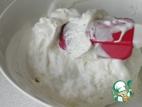 В творог лопаточкой аккуратно вмешиваем 2/3 швейцарской меренги (ориентируйтесь на свой вкус, можно вмешать и меньше меренги).