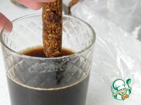 «Пальчики» окунаем в кофе и выкладываем в формочку.