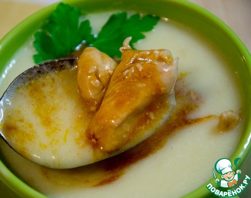 Рецепт "Суп-пюре с тушеной курицей":