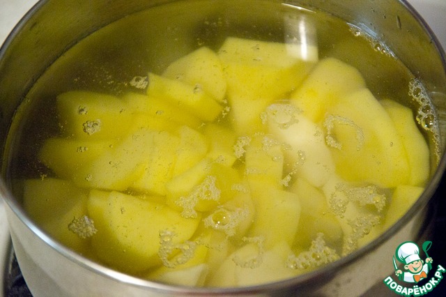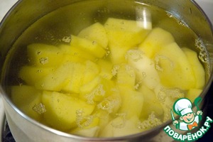 Картофель очистить, нарезать дольками и отварить в подсоленной воде. |