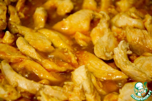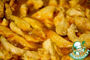 Курицу обжарить на сковороде до побеления. |