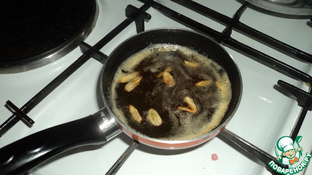 • На сливочном масле обжариваем чеснок до золотистого цвета