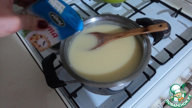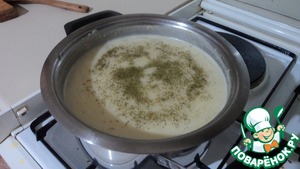 • Добавляем сливки, солим, перчим, кто хочет, может добавить кубик бульонный и проварить 1-2 минутки.