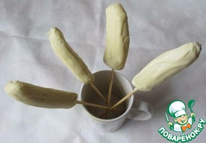 Ещё нам понадобятся деревянные шпажки, которые надо на 30 минут замочить в горячей воде с добавлением уксуса. -