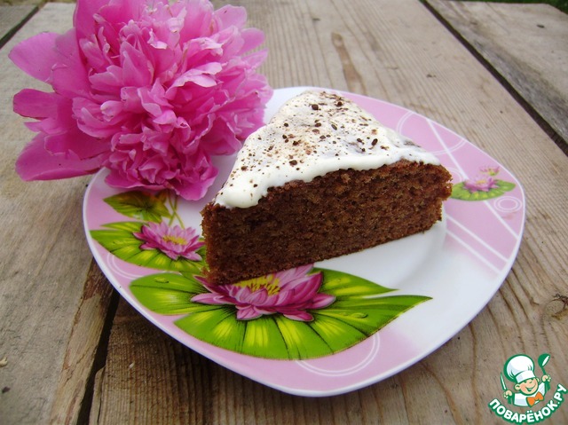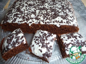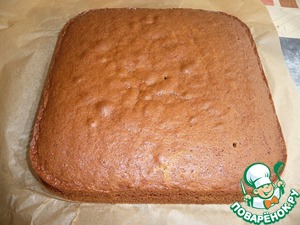 Остывший корж смазать любым кремом и обсыпать шоколадом. Я смешала сгущенку со сливками. Нарезать порционными пирожными. Если корж разрезать поперек и смазать кремом, будет тортик.