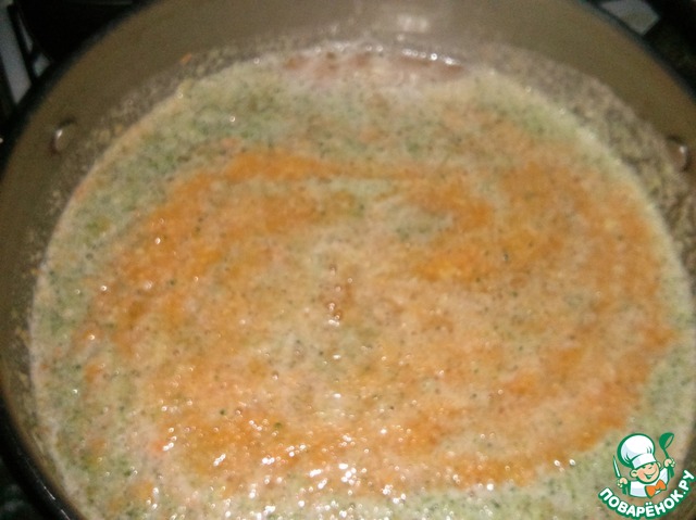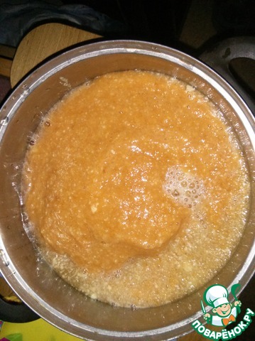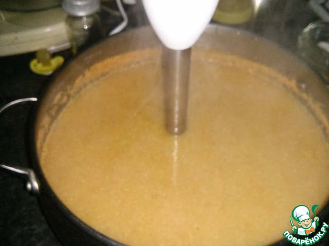 Затем измельчаем блендером, при необходимости добавляем понемногу бульон. Можно давать малышу, но мы готовим впрок, поэтому, стерилизуем 30 мин. и закрываем.