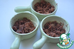 Порционные формочки смазать сливочным маслом и посыпать бисквитной крошкой (я положила побольше бисквитных крошек для основы запеканки )