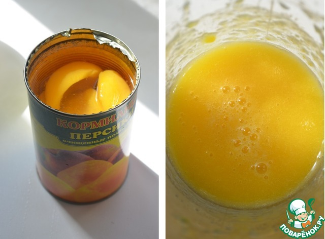 Персики измельчить блендером, добавить 3-4 ст. л сиропа.