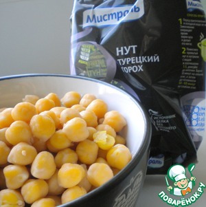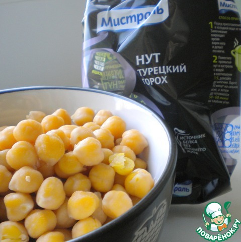 Нут я замочила на ночь и заранее отварила до готовности (как написано на пачке).