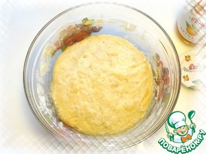 Скатать тесто в шар, накрыть полотенцем и поставить в теплое место. Через 30 мин., добавив 1 ст. л. подсолнечного масла, обмять тесто и снова убрать.
