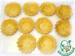 Дать тарталеткам остыть, вынуть из формочек, я цепляла зубочисткой, и они хорошо вылетали. После чего их можно заполнить начинкой.