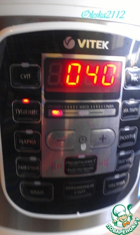 Выставляем режим "Тушение" на 30-35 минут. У меня на фото 40, но это многовато.