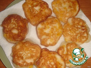 Если есть необходимость, промокните лишний жир, выложив готовые оладушки на бумажное полотенце.