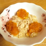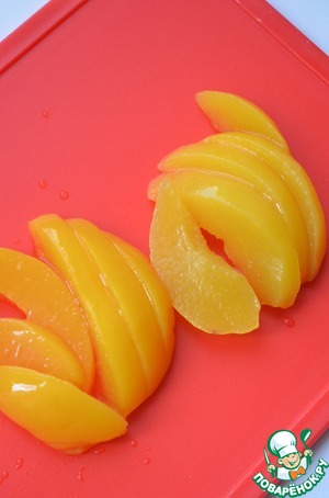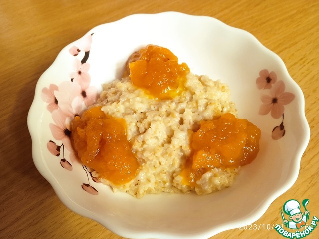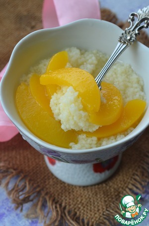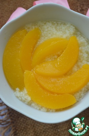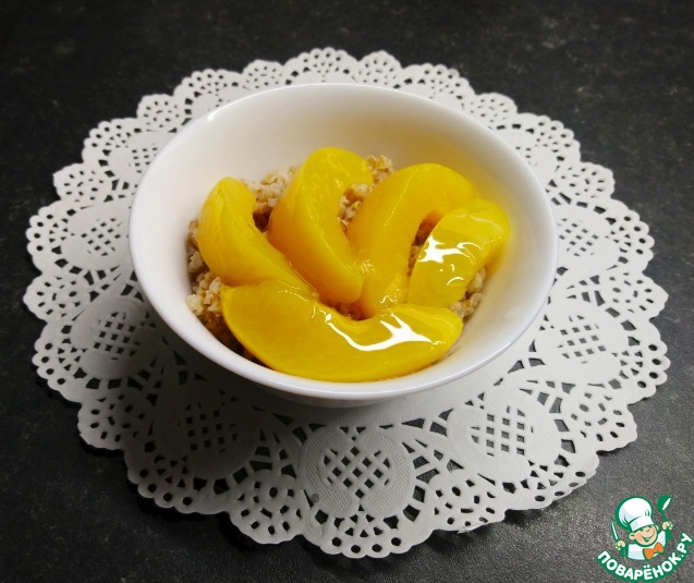 Перед подачей соедините горячую кашу с нарезанными персиками.