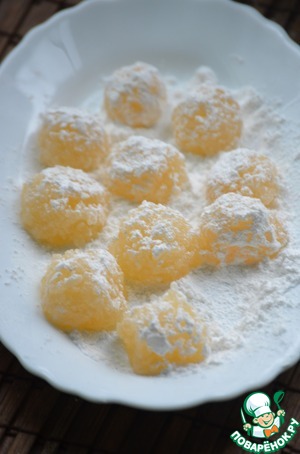 Затем скатать шарики и обвалять в сахарной пудре. |