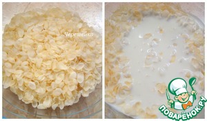 Рисовые хлопья залить сливками и дать набухнуть пока мы занимаемся остальными продуктами.