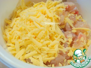 Добавить к рыбе натертый на крупной терке сыр. Перемешать.