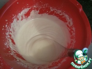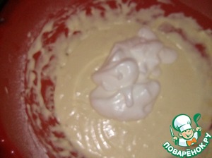Готовим тесто: в примороженный белок добавить соль, взбить в густую пену и в холодильник.